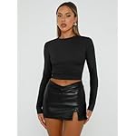 Home Clothing, Shoes and Jewelry Women Trendy Queen Womens Long Sleeve T Shirts Fall Fashion 2025 Basic Crop Tops Going Out Outfits Y2k Clothes